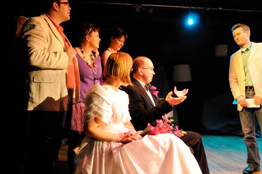 Enkele dorpelingen studeren stiekem een toneelstukje in, om dat te kunnen opvoeren op hun huwelijksdag.